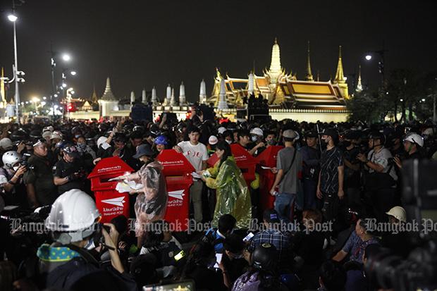 Four red post boxes were placed on Ratchadamnoen Nai Avenue for protesters to "post" their letters to the King.