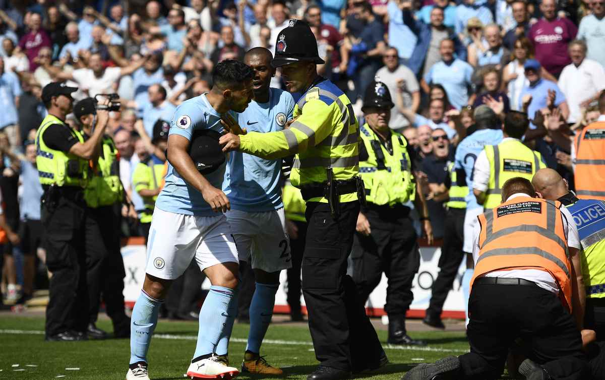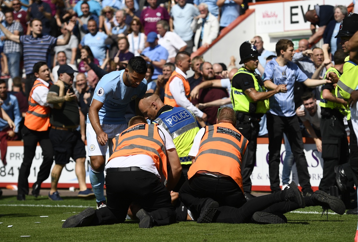"The goal was followed by excited celebrations where a number of Manchester City supporters encroached on to the pitch," Dorset Police said in a statement.