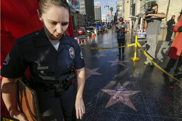 LOS ANGELES _ Donald Trump's star on the Hollywood Walk of Fame has had a rough go of it since the controversial business mogul and reality television star became a Republican presidential candidate.