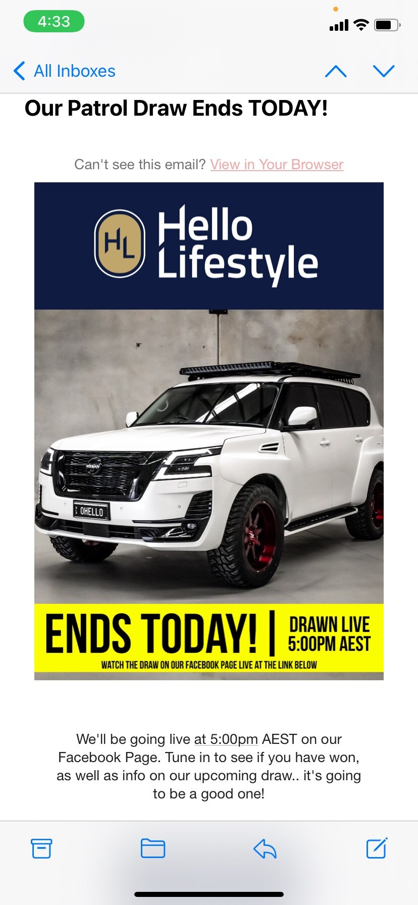 In a live video draw announced on social media months later, Amelia's name was read out as the winner of the modified Widebody Y62 Nissan Patrol and all associated on-road costs.
