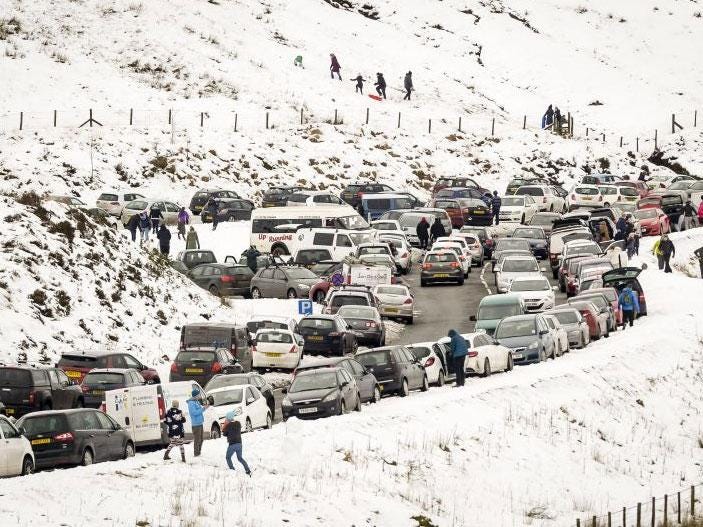 However, vehicles parked on the side of the road while people went sledging on the hills caused a build-up of traffic and road blockages.