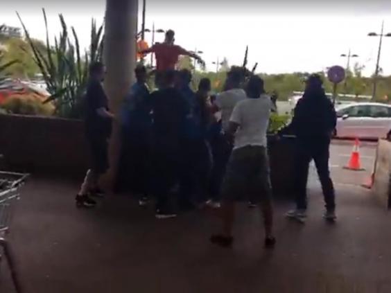 During the filming, another group of men burst in and assaulted the man as he was being questioned by vigilantes, casing security guards and police to intervene.