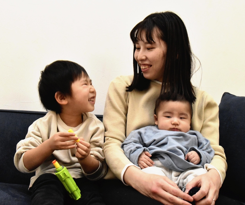 She feels happy when her 3-year-old son, Takara, brings her a new diaper for Joi, who was born last October. Sekiguchi said that she now understands the importance of the time when she can be with her family.