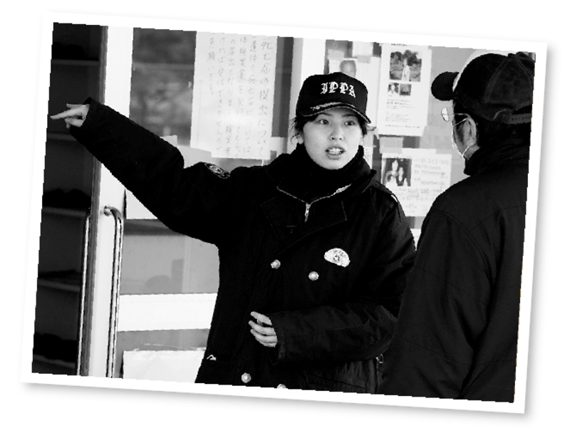 Immediately after the massive earthquake, Sekiguchi ran out of the koban police box beside JR Ofunato Station where she was on duty, and guided residents to evacuation sites. The koban was later washed away by tsunami.