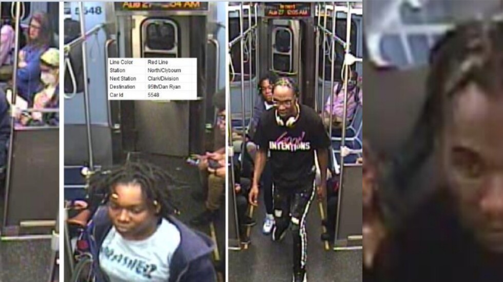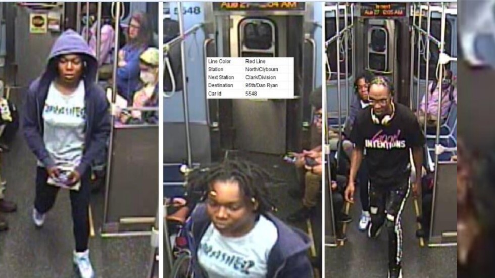 Chicago police have released photos of suspects in the shooting of a woman on a CTA Red Line train downtown last week.