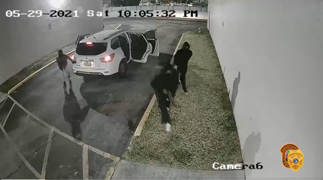 In the 22-second clip, three men exit a white Nissan Pathfinder and run towards the El Mula Hotel in Hialeah. Approximately eight seconds later they get back into the vehicle. The trio of shooters are suspected of killing at least two people and injuring more than 20 at an album launch party at the venue. Earlier, police asserted that the shooting was not random, and they believed it was premeditated.