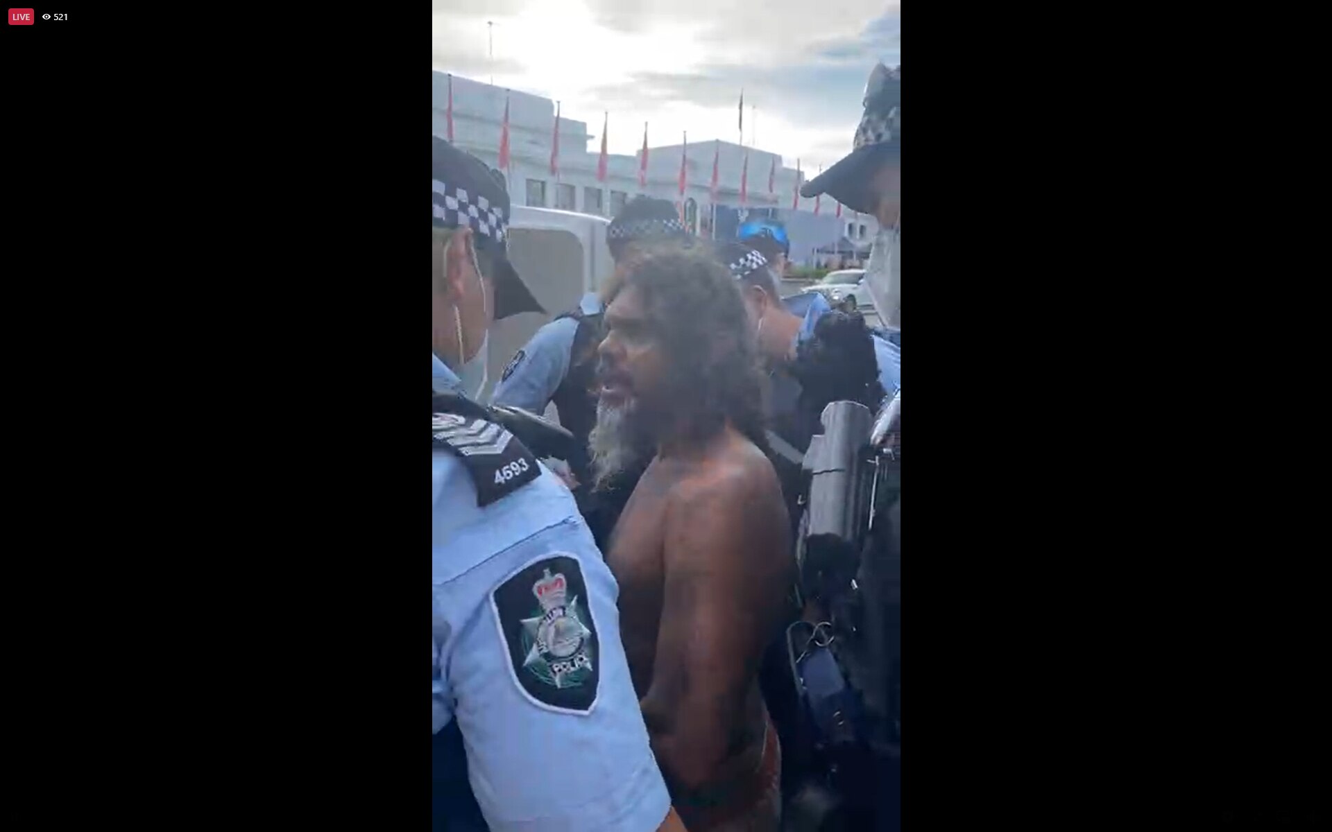 As police moved in, protesters at the scene stood in a group and used clapping sticks, while one man yelled into a loudspeaker: "there's no authority or jurisdiction over this land".