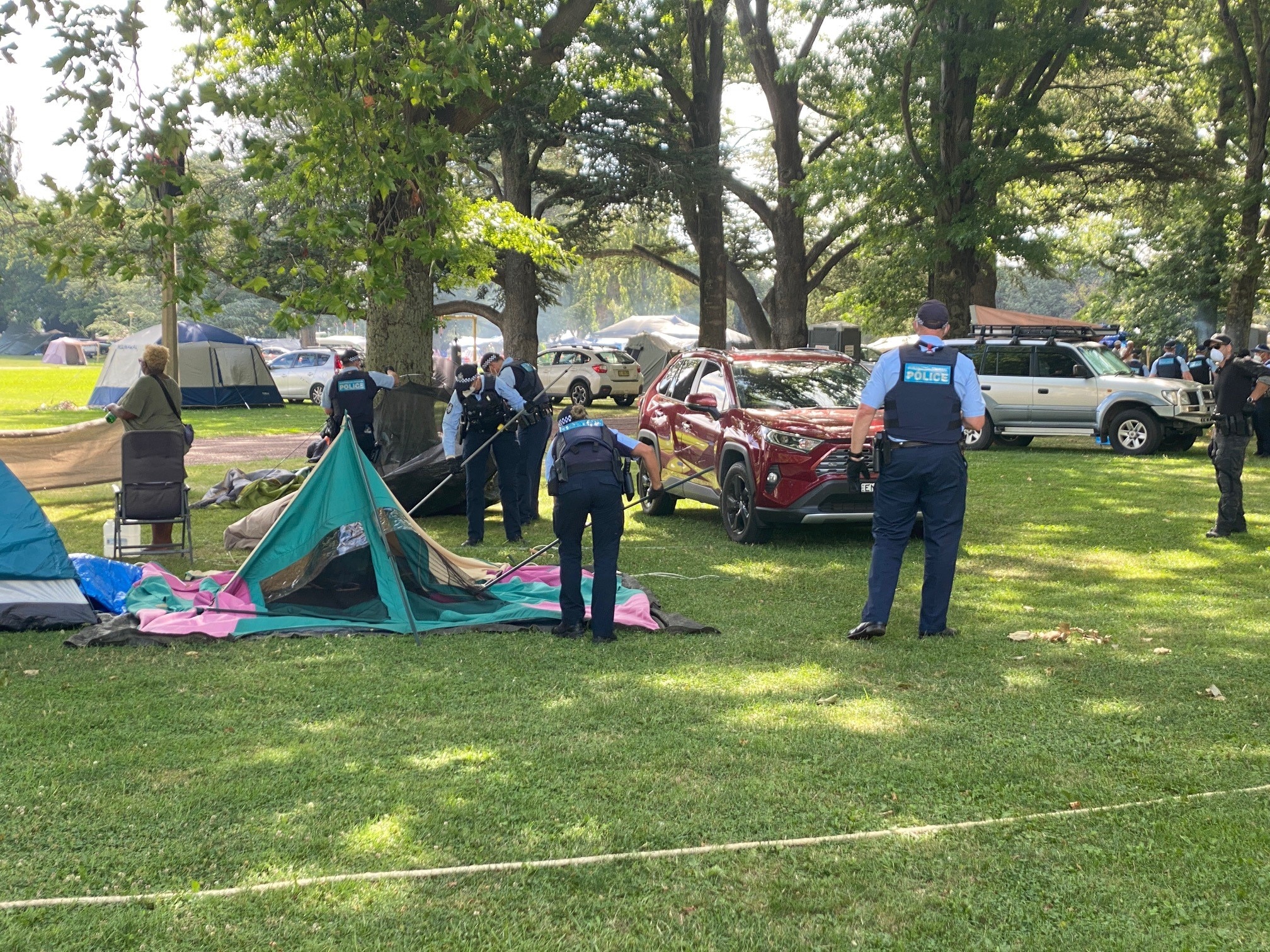 ACT Policing said in a statement that its action at the site on Friday afternoon followed a request from the National Capital Authority (NCA) to remove all structures and vehicles that lacked permits.