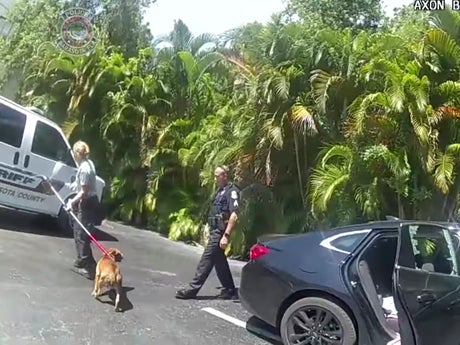 The dog was taken from the back of the car, and into an awaiting kennel by Sarasota animal services.