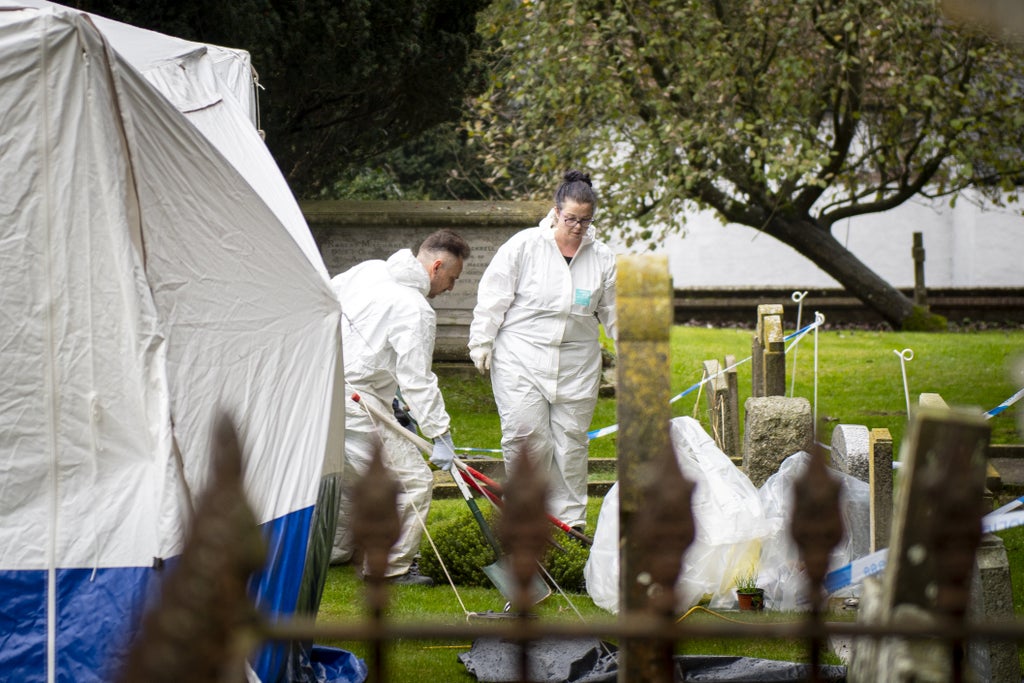 Police swarmed the churchyard early on Monday morning (17 October) as they set up for the planned dig.
