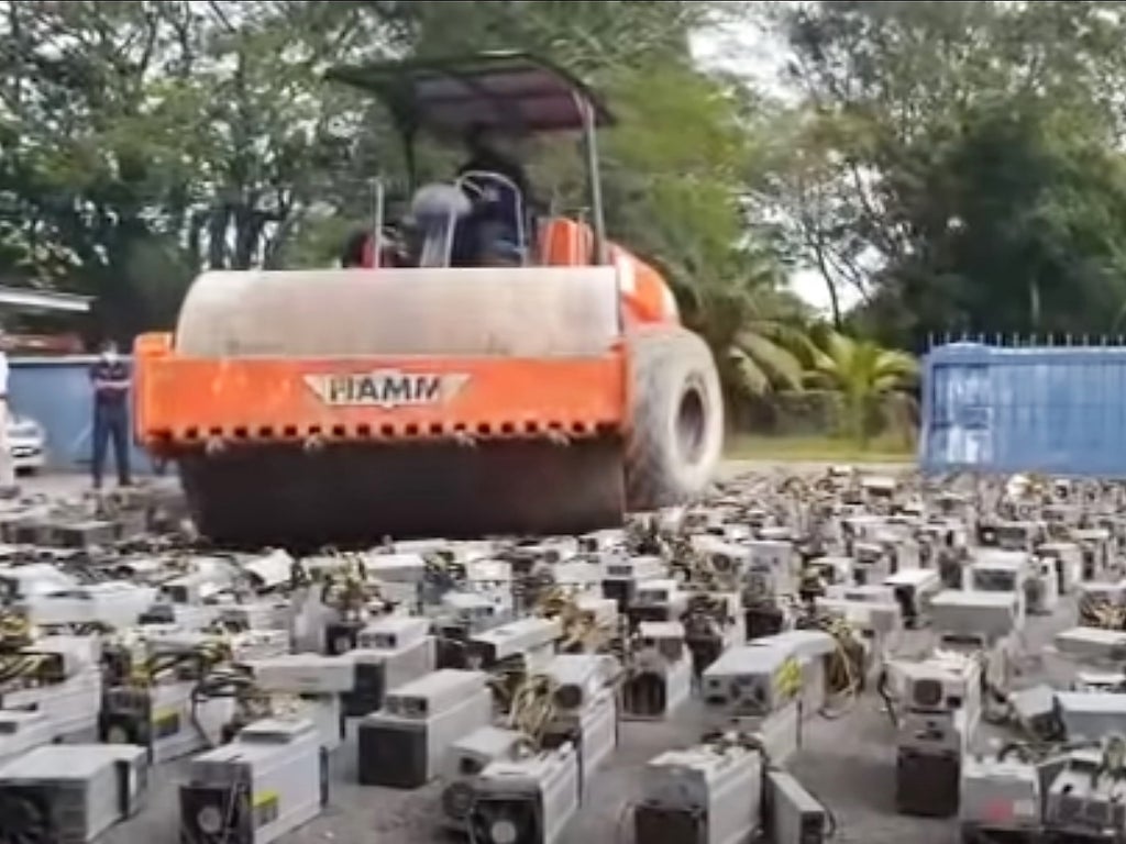 Malaysian authorities have seized more than 1,000 bitcoin mining rigs and crushed them using a steamroller, according to local reports.
