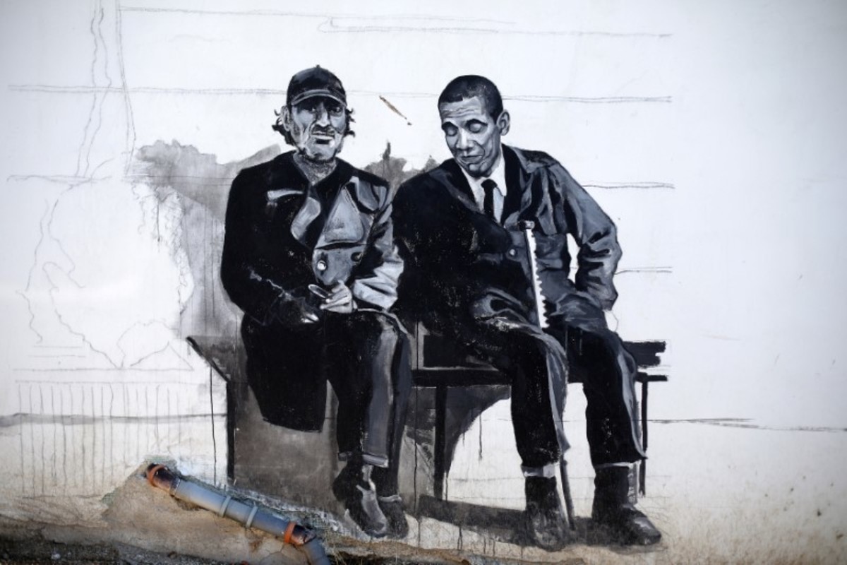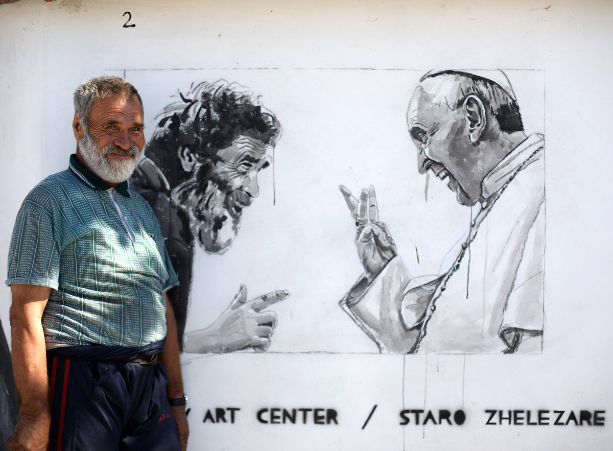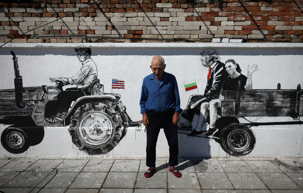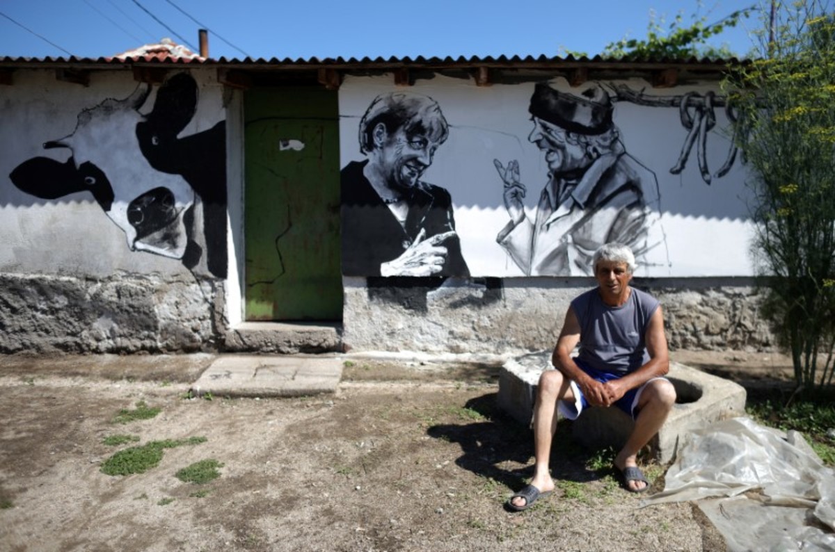 A picture shows a mural depicting local villager sitting next to former U.S. President Barack Obama in the village of Staro Zhelezare, Bulgaria, July 28, 2017. REUTERS/Stoyan NenovPolish artists paint murals on the wall of a house in the village of Staro Zhelezare, Bulgaria, July 28, 2017. REUTERS/Stoyan NenovLocal villager Kancho, poses next to murals on the wall of his house, depicting him and German Chancellor Angela Merkel, in the village of Staro Zhelezare, Bulgaria, July 28, 2017. REUTERS/Stoyan NenovLocal villager Nikola, poses next to murals on the wall of a house, depicting him and Pope Francis in the village of Staro Zhelezare, Bulgaria, July 28, 2017. REUTERS/Stoyan NenovA Polish artist prepares a wall to paint murals on a house in the village of Staro Zhelezare, Bulgaria, July 28, 2017. The banners read "Staro Zhelezare is the source of progressive ideas!", "All artists - to the village!", "Artists on the barricades!" and "The village futurism is arriving". REUTERS/Stoyan NenovLocal villager Velika, poses next to murals on the wall of her house, depicting her, her husband and Britain's Prime Minister Theresa May, in the village of Staro Zhelezare, Bulgaria, July 28, 2017. REUTERS/Stoyan NenovLocal villager Stefana, poses next to murals on the wall of her house, depicting her and a donkey in the village of Staro Zhelezare, Bulgaria, July 28, 2017. REUTERS/Stoyan NenovLocal villager Kancho, walks next to murals on the wall of his house, depicting him, his wife Ivanka, German Chancellor Angela Merkel and French President Emmanuel Macron in the village of Staro Zhelezare, Bulgaria, July 28, 2017. REUTERS/Stoyan NenovLocal villager Ivan and his wife chat next to murals on the wall of their house, depicting their grandson and reggae legend Bob Marley, in the village of Staro Zhelezare, Bulgaria, July 28, 2017. REUTERS/Stoyan NenovLocal villager Velika, poses next to a mural of herself on the wall of her house, in the village of Staro Zhelezare, Bulgaria, July 28, 2017. REUTERS/Stoyan NenovLocal villager Kancho, poses next to murals on the wall of his house, depicting him, German Chancellor Angela Merkel and U.S. President Donald Trump in the village of Staro Zhelezare, Bulgaria, July 28, 2017. REUTERS/Stoyan Nenov