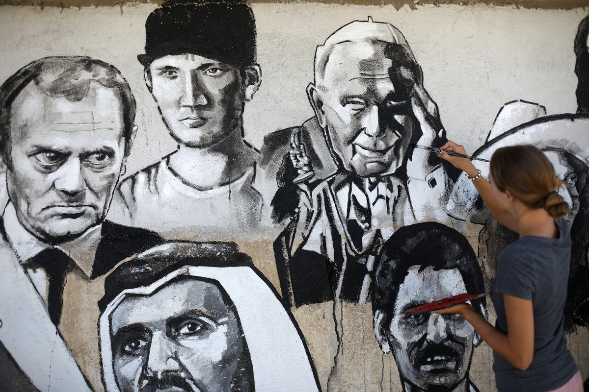 "I came ... to give some color and beauty to the place and to the people," street artist Kinga Matuszewska, who studies architecture in Poznan, said on Friday as she finished her piece. "People here are so nice and friendly."