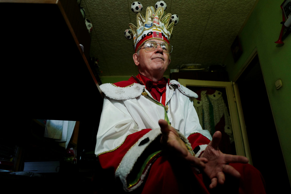 Andrzej "Bobo" Bobowski, known as "the King of Polish fans" speaks at his apartment in Warsaw, Poland June 6, 2018. Picture taken June 6, 2018. REUTERS/Kacper PempelAndrzej "Bobo" Bobowski, known as "the King of Polish fans" takes a soccer ball at his apartment in Warsaw, Poland June 6, 2018. Picture taken June 6, 2018. REUTERS/Kacper PempelAndrzej "Bobo" Bobowski, known as "the King of Polish fans", walks outside an apartment building in Warsaw, Poland June 6, 2018. Picture taken June 6, 2018. REUTERS/Kacper PempelAndrzej "Bobo" Bobowski, known as "the King of Polish fans", puts on his occasional coat at his apartment in Warsaw, Poland June 6, 2018. Picture taken June 6, 2018. REUTERS/Kacper PempelAndrzej "Bobo" Bobowski, known as "the King of Polish fans", poses for a picture in front of an apartment building in Warsaw, Poland June 6, 2018. Picture taken June 6, 2018. REUTERS/Kacper PempelAndrzej "Bobo" Bobowski, known as "the King of Polish fans", looks on at his apartment in Warsaw, Poland June 6, 2018. Picture taken June 6, 2018. REUTERS/Kacper PempelAndrzej "Bobo" Bobowski, known as "the King of Polish fans" poses for a picture inside an apartment building in Warsaw, Poland June 6, 2018. Picture taken June 6, 2018. REUTERS/Kacper Pempel
