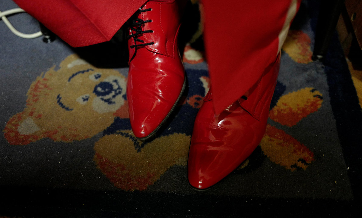Shoes of Andrzej "Bobo" Bobowski, known as "the King of Polish fans" are pictured at his apartment in Warsaw, Poland June 6, 2018. Picture taken June 6, 2018. REUTERS/Kacper Pempel