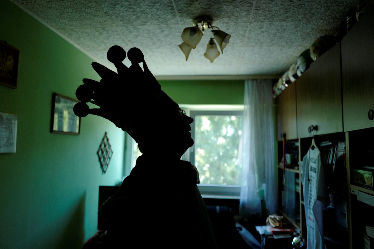 A detail of crown of Andrzej "Bobo" Bobowski, known as "the King of Polish fans" is pictured at his apartment in Warsaw, Poland June 6, 2018. Picture taken June 6, 2018. REUTERS/Kacper Pempel