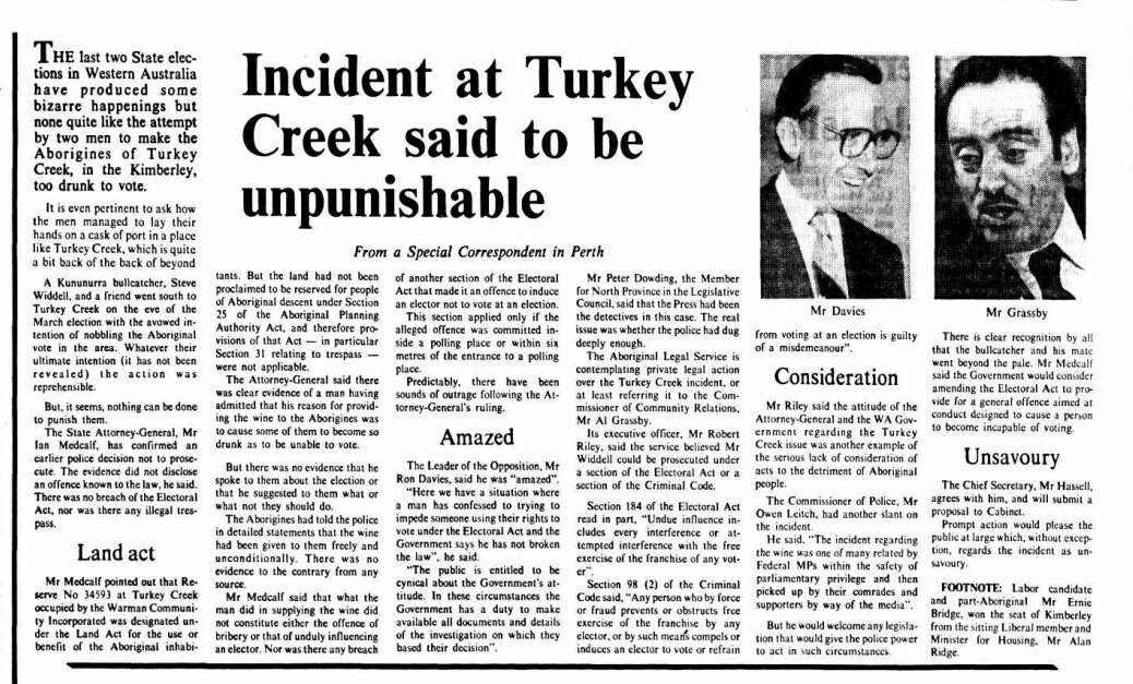 On polling day in 1980, a scandalous rumour spread through the Kimberley grapevine.