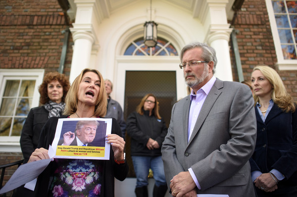 PLAINVILLE, Conn. _ Flanked by friends, family and supporters, Republican state House candidate and Cheshire home invasion survivor William Petit condemned a digital ad funded by a union-based political action group that linked him with Donald Trump's "attack on women and families."