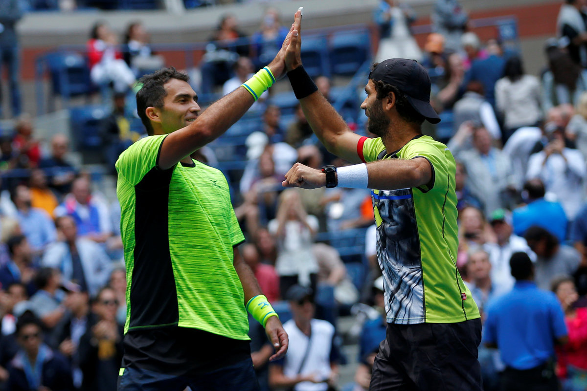 NEW YORK (Reuters) - Jean-Julien Rojer of the Netherlands and Romanian Horia Tecau eased past Feliciano and Marc Lopez 6-4 6-3 to claim their first U.S. Open doubles grand slam with Rojer making a small political statement following the win on Friday.