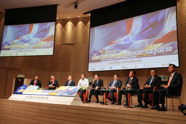Representatives of various parties were invited to a seminar held by the Federation of Thai Capital Market Organisations (Fetco) in Bangkok to present their visions for the economy and capital market if they are elected to form the next government after the March 24 election.