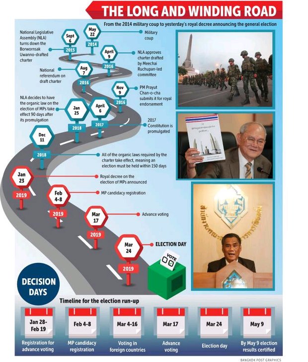 With the poll dates now fixed, political parties will have more than 50 days to campaign, Mr Ittiporn said - exactly 58 days in fact from Thursday through the last legal day to campaign on Saturday, March 23.