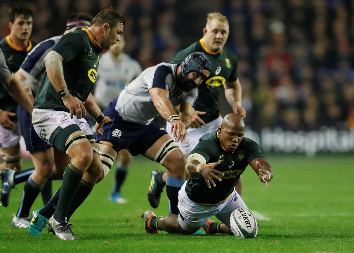 But within two minutes Scotland paid the price for over-adventurous play with ball in hand in their own 22 as they were snagged and Springbok captain Siya Kolisi forced a turnover that set Pollard away for a try to make it 14-7.