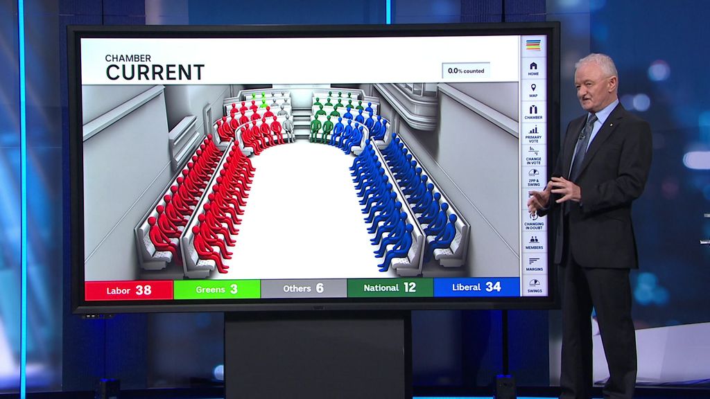"We can't call it at this stage, but the swing is on," indicating red Labor seats.