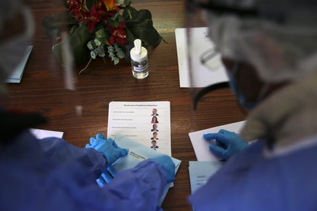 For 48 hours across the country, crews wearing protective clothing and accompanied by a police officer were collecting the votes of people who had registered for the service. The voters are given a ballot paper and privacy to mark their choice.