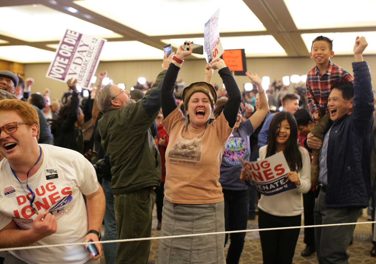 John Laine, 65, a retired book editor from Birmingham who backed Jones, said he thought many Republicans crossed over and voted for a Democrat "maybe for the first time in the lives. My cousin said she had to hold her nose and vote Democrat."