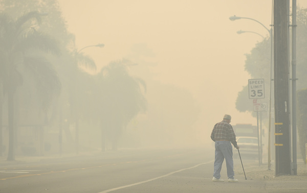Phil Moyer, air quality specialist with the Ventura County Air Pollution Control District, said a winter storm or new Santa Ana winds could lift the smoke out of Ojai, which is heavily polluted. But there's no rain in the forecast and winds would have to be very strong to reach the low-lying community, and would likely intensify the fires.