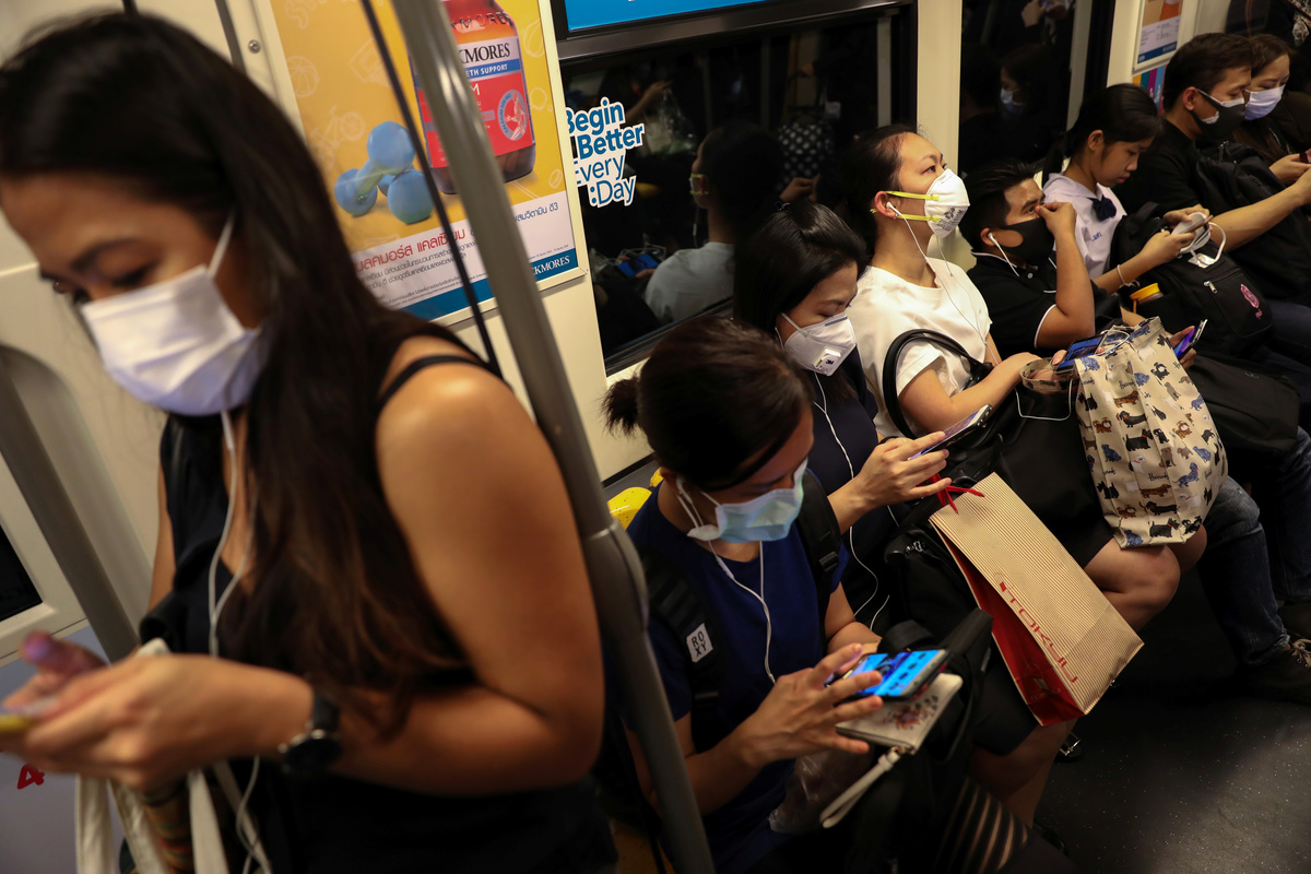 People wear masks as they commute after work, as classes in over 400 Bangkok schools have been cancelled, due to the worsening air quality in Bangkok, Thailand, January 30, 2019. REUTERS/Athit Perawongmetha