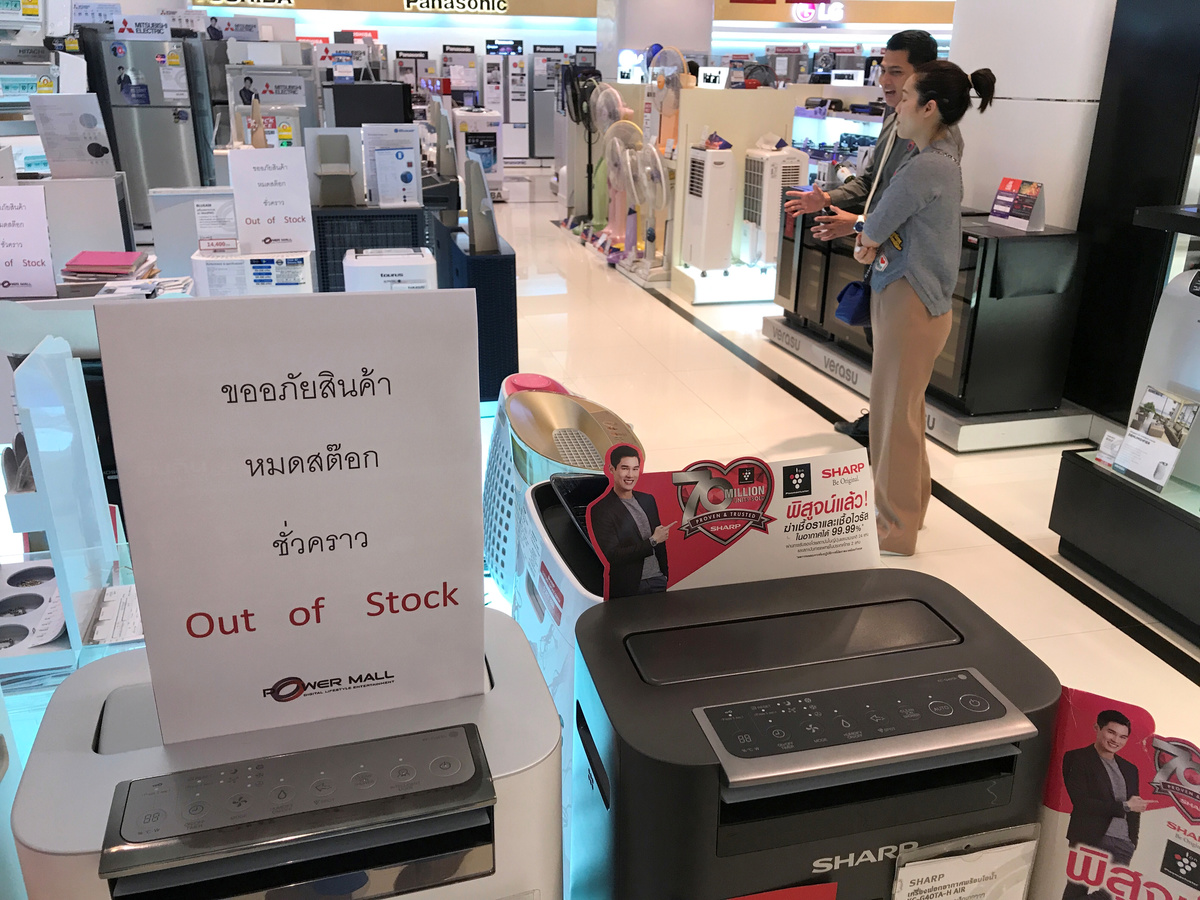 Students and their parents wear masks outside a public school, as classes in over 400 Bangkok schools have been cancelled due to worsening air pollution, in Bangkok, Thailand, January 30, 2019. REUTERS/Athit PerawongmethaAir purifiers are seen out of stock at a shopping mall in Bangkok, Thailand, January 30, 2019. REUTERS/Jorge SilvaStudents wear masks as they wait to be picked up, as classes in over 400 Bangkok schools have been cancelled due to worsening air pollution, at a public school in Bangkok, Thailand, January 30, 2019. REUTERS/Athit PerawongmethaStudent wear masks as they wait to be picked up, as classes in over 400 Bangkok schools have been cancelled due to worsening air pollution, at a public school in Bangkok, Thailand, January 30, 2019. REUTERS/Athit PerawongmethaStudents and their parents wear masks outside a public school, as classes in over 400 Bangkok schools have been cancelled due to worsening air pollution, in Bangkok, Thailand, January 30, 2019. REUTERS/Athit PerawongmethaA student and his father wear masks outside a public school, as classes in over 400 Bangkok schools have been cancelled due to worsening air pollution, in Bangkok, Thailand, January 30, 2019. REUTERS/Athit PerawongmethaA student wears a mask as he waits to be picked up, as classes in over 400 Bangkok schools have been cancelled due to worsening air pollution, at a public school in Bangkok, Thailand, January 30, 2019. REUTERS/Athit PerawongmethaA student wears a mask as he waits to be picked up, as classes in over 400 Bangkok schools have been cancelled due to worsening air pollution, at a public school in Bangkok, Thailand, January 30, 2019. REUTERS/Athit PerawongmethaA student wears a mask as she waits to be picked up, as classes in over 400 Bangkok schools have been cancelled due to worsening air pollution, at a public school in Bangkok, Thailand, January 30, 2019. REUTERS/Athit PerawongmethaStudents and their parents wear masks outside a public school, as classes in over 400 Bangkok schools have been cancelled due to worsening air pollution, in Bangkok, Thailand, January 30, 2019. REUTERS/Athit PerawongmethaFILE PHOTO: A woman walks a dog in front of a graffiti of Thai artist Headache Stencil which makes a reference to the air quality in Bangkok, Thailand, January 15, 2019. REUTERS/Jorge Silva/File Photo