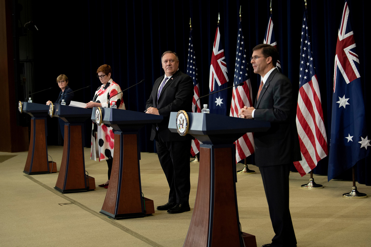 U.S. Secretary of State Mike Pompeo and Defense Secretary Mark Esper held two days of talks in Washington with their Australian counterparts, who had flown around the world for the meetings despite the COVID-19 pandemic and face two weeks of quarantine on their return.