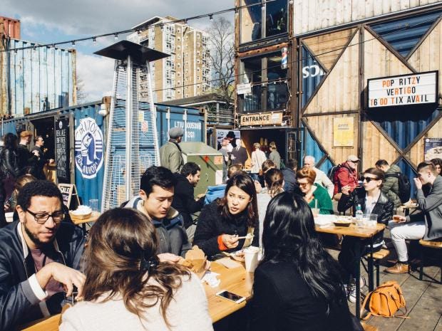 Pop Brixton has been so successful that the council has just extended its lease until 2020. Leay and his team have created a company called Make Shift and gone on repeat their success in nearby Peckham with Peckham Levels, in a disused car park. A third site in Hackney, on the old Olympic Park site, is next.