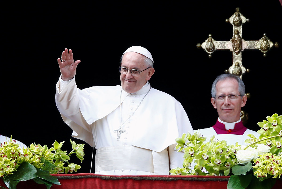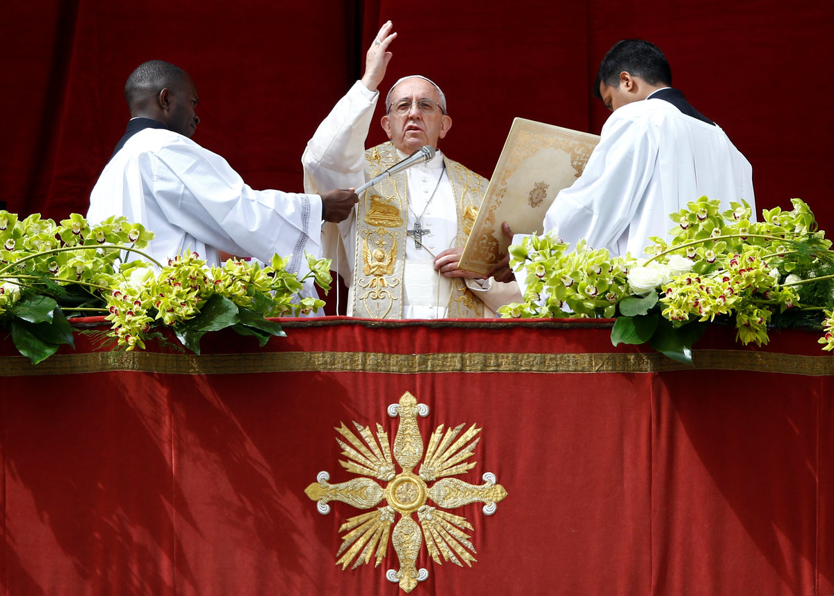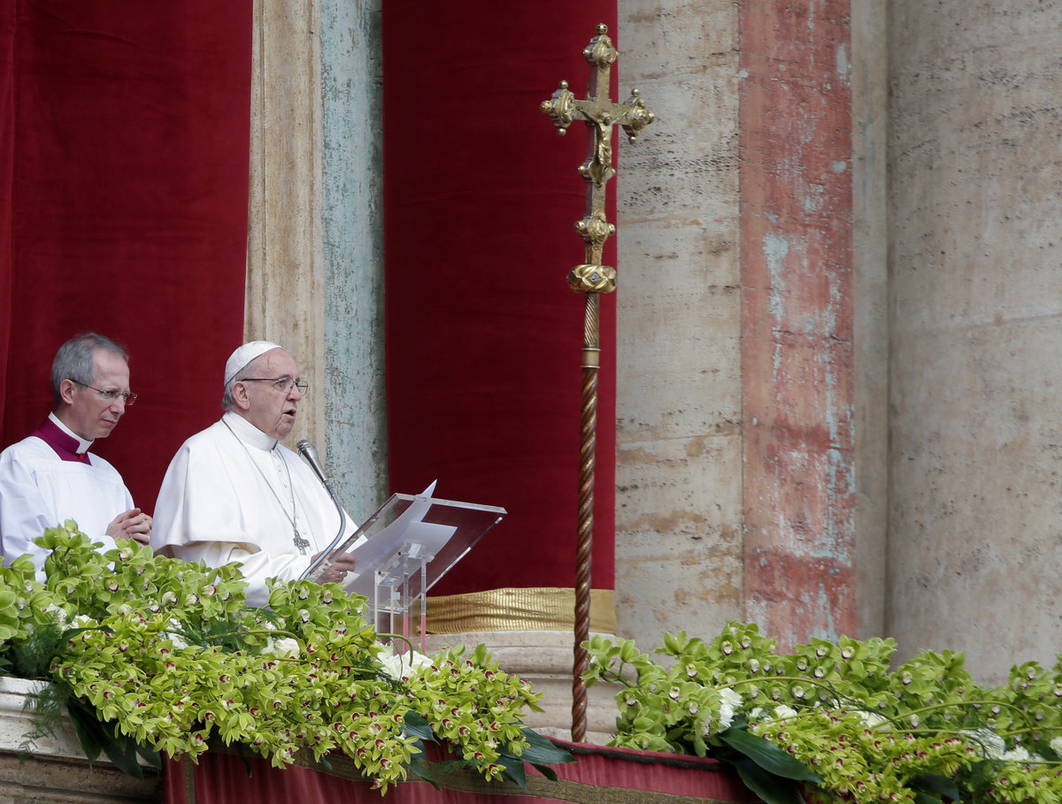 The pope made his appeal in his "Urbi et Orbi" (to the city and the world) message from the central balcony of St. Peter's Basilica to tens of thousands of people in the flower-bedecked square below where he earlier celebrated a Mass.