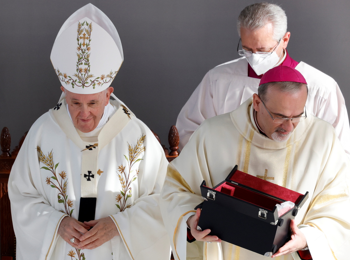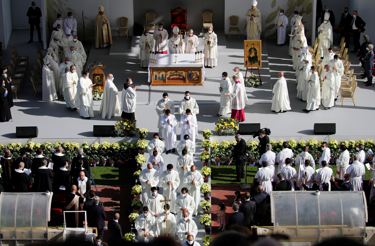 Many of the 10,000 worshippers were Filipinos who work in Cyprus, mostly as housekeepers. The Philippines is Asia's largest Catholic country.