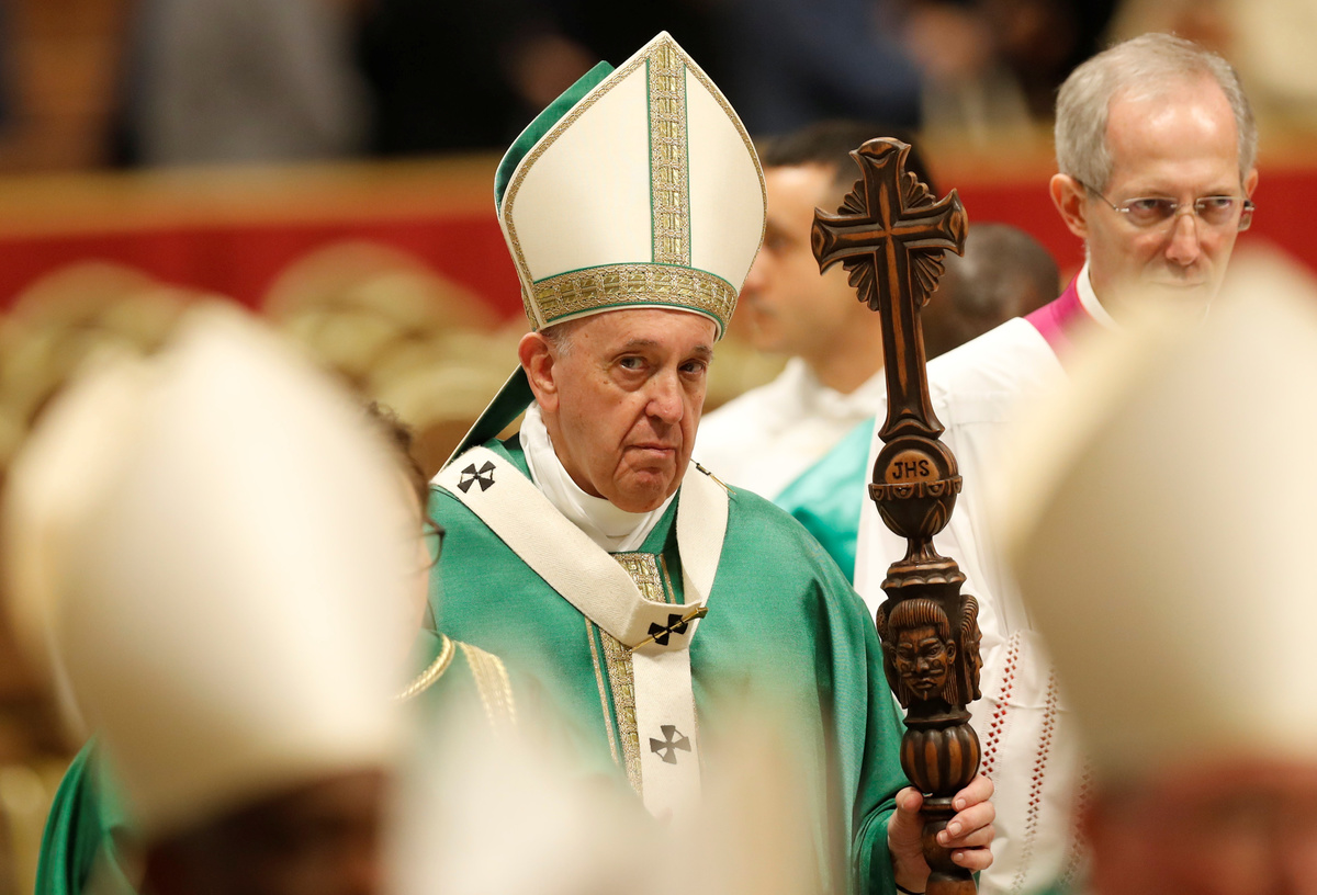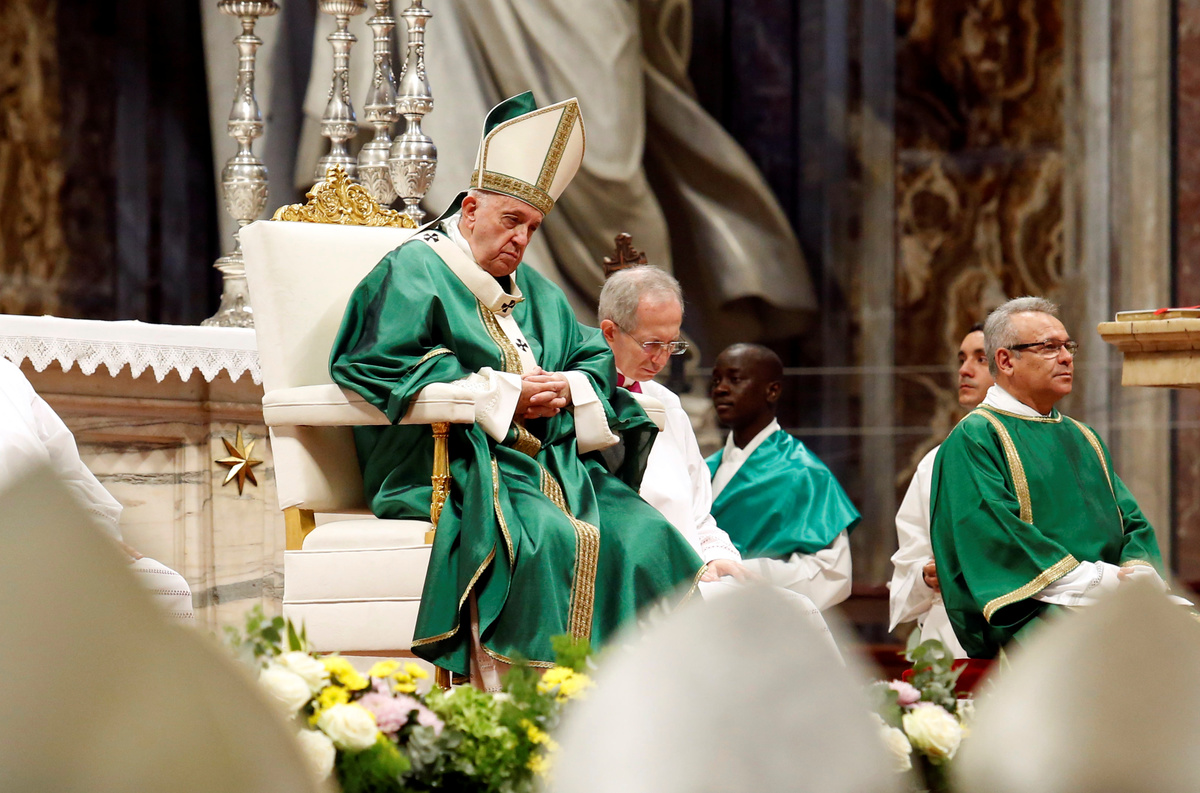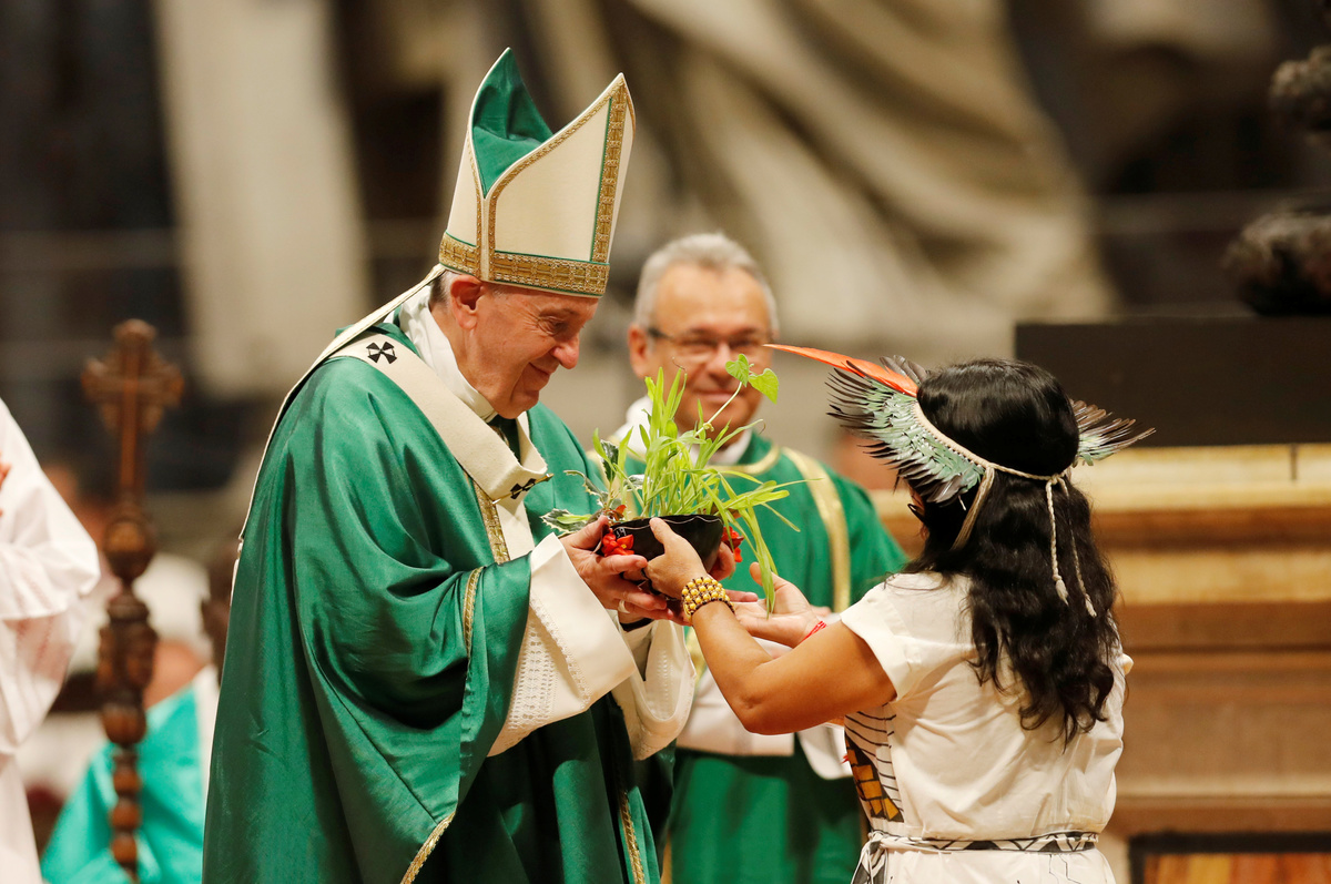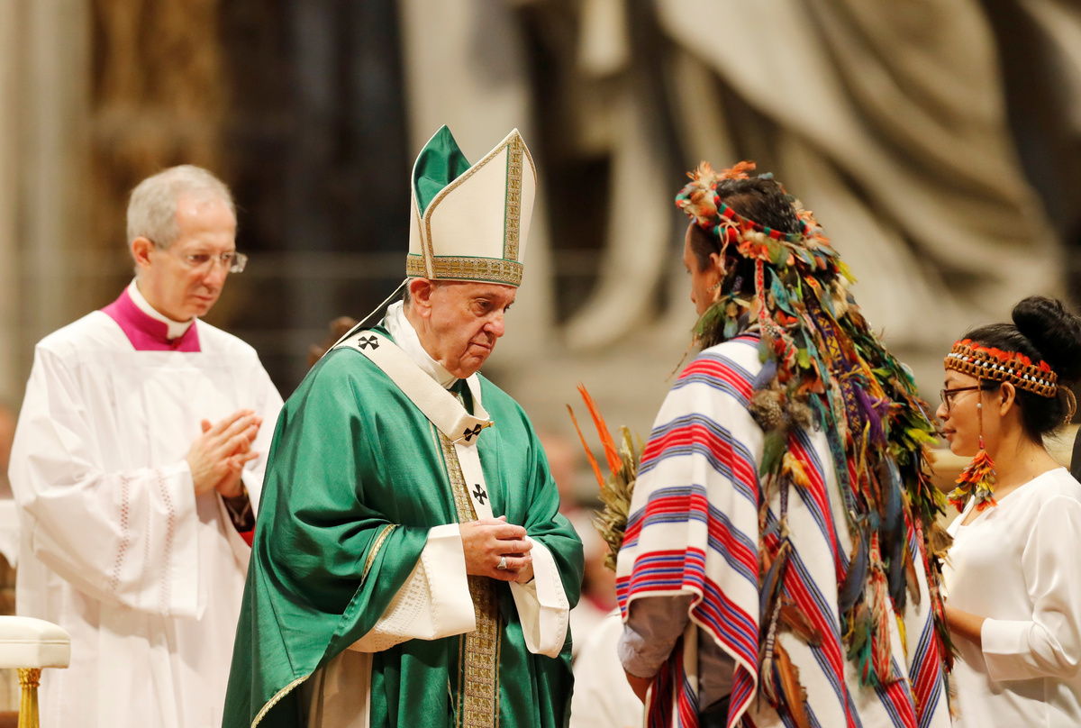 In his sermon at a closing Mass in St. Peter's Basilica, Francis criticized those who consider indigenous people "backward and of little worth" instead of acknowledging what their cultures can teach others.