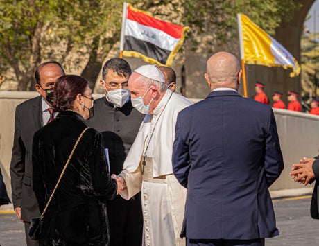 The papal entourage were all vaccinated before travelling to Iraq. For the first time the Pope eschewed his usual mode of transport – open-topped vehicles – and instead was shuttled through the city in a bulletproof BMW flanked by police units on motorcycles.