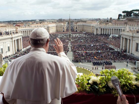 The audience in St Peter’s Square had to pass metal detector checks and bag searches before they could take part in the Easter Sunday Mass.