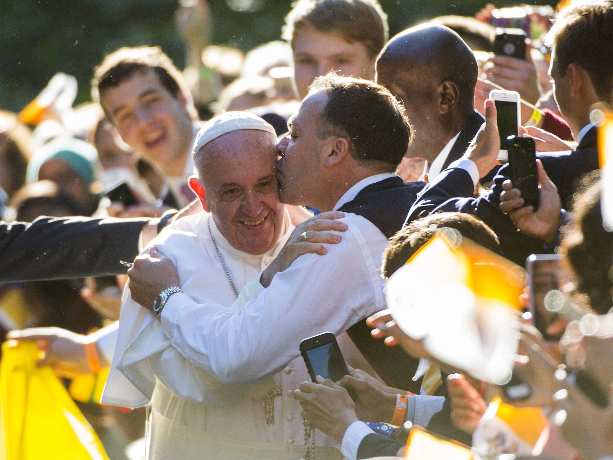 The formalities concluded, the two leaders disappeared into the White House for private talks. Some 45 minutes later, Francis re-emerged in his white “Popemobile” (this one a converted open-top Jeep Wrangler), for a circuit around neighbouring avenues washed in sunlight and the delirious cheers of tens of thousands lining the route.