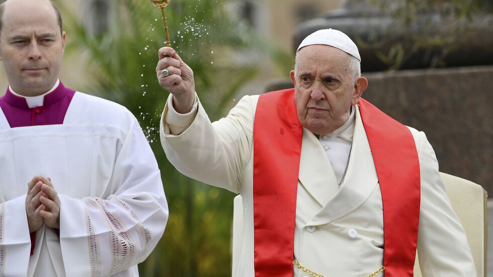 Francis said Holy Week will see “more intense prayer” for the “martyred Ukrainian people.’’ In a reference Russia’s war in Ukraine, he noted that the olive branches Catholics wave on Palm Sunday are symbols of Jesus’ peace.