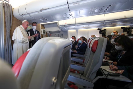 Traveling back to the Vatican from a trip to Iraq on Monday, the pope told Italian media that following his visit to Budapest he may visit Bratislava, the capital of neighboring Slovakia. While that visit isn't confirmed, Slovakia's president, Zuzana Caputova said she had invited the pontiff to visit during a meeting in the Vatican in December.