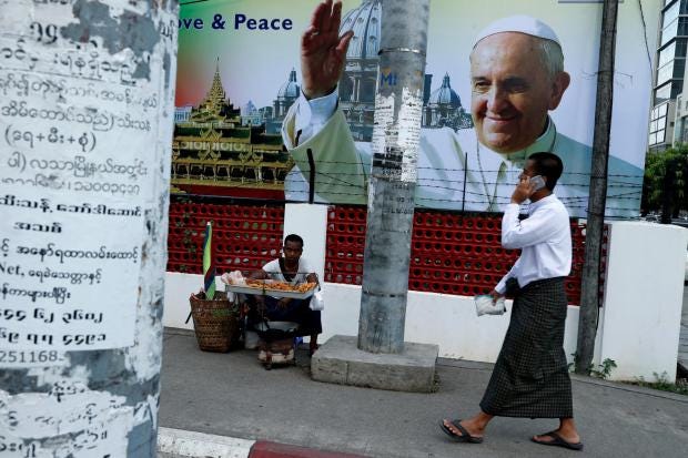 While in Burma, Pope Francis is scheduled to hold a mass in a stadium in Yangon, spend time with Buddhist leaders and meet Burma’s de facto leader Aung San Suu Kyi and president Htin Kyaw.