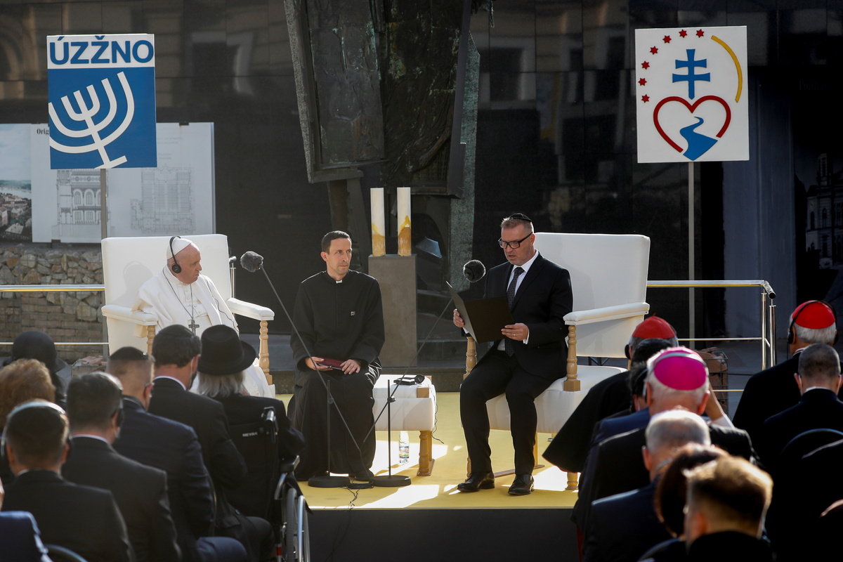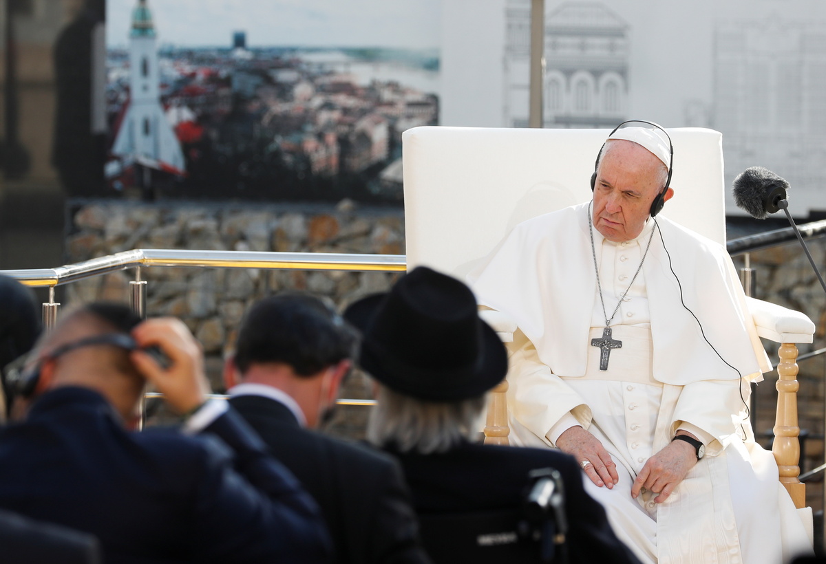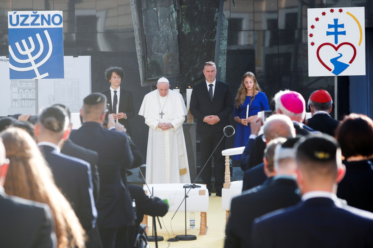 "Here, in this place, the Name of God was dishonored, for the worst form of blasphemy is to exploit it for our own purposes, refusing to respect and love others," the pope told representatives of the Jewish communities of Slovakia.