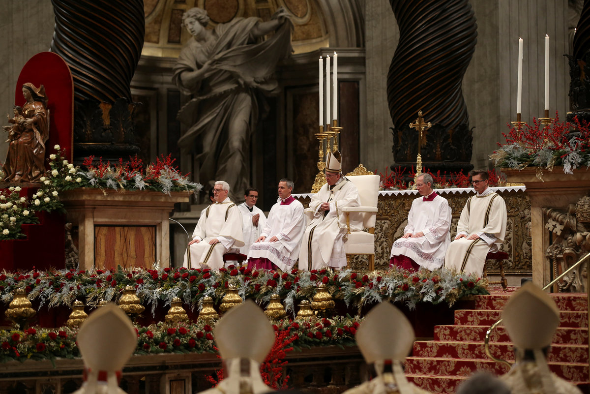 The Gospel reading at the Mass in Christendom's largest church recounted the Biblical story of how Mary and Joseph had to travel from Nazareth to Bethlehem to be registered for a census ordered by Roman Emperor Caesar Augustus.