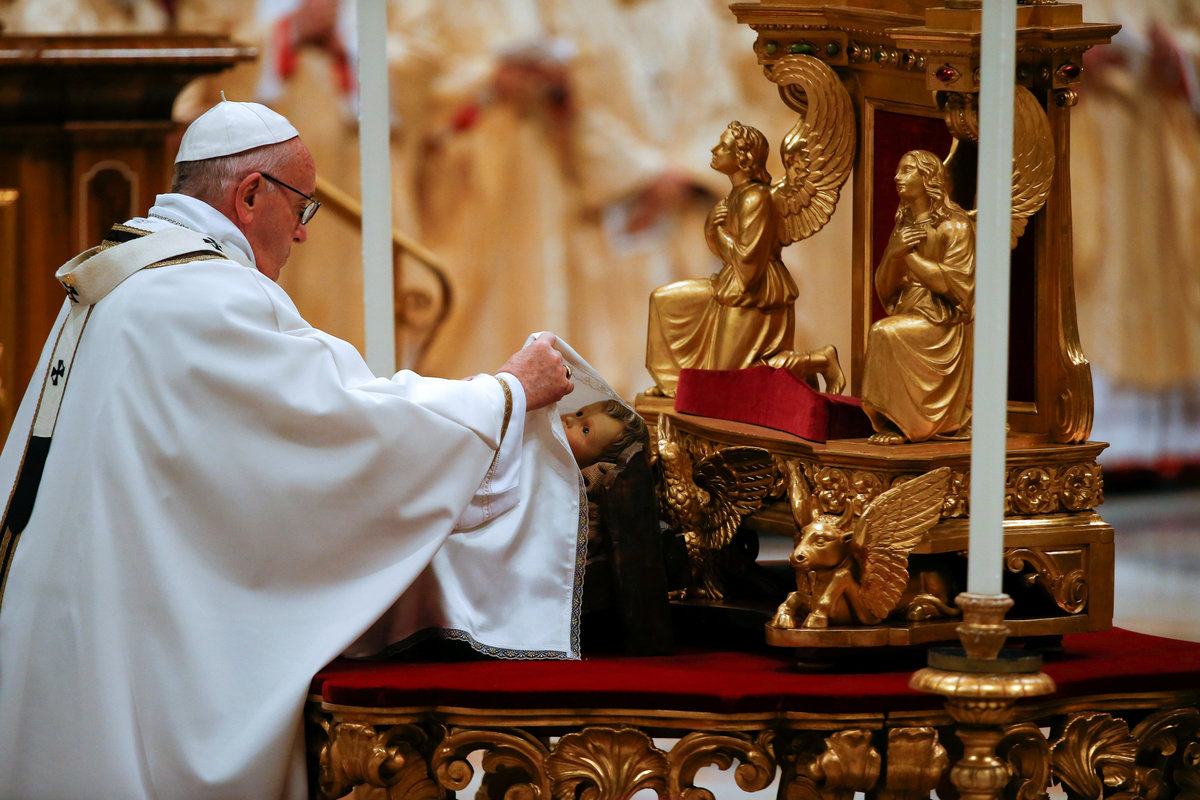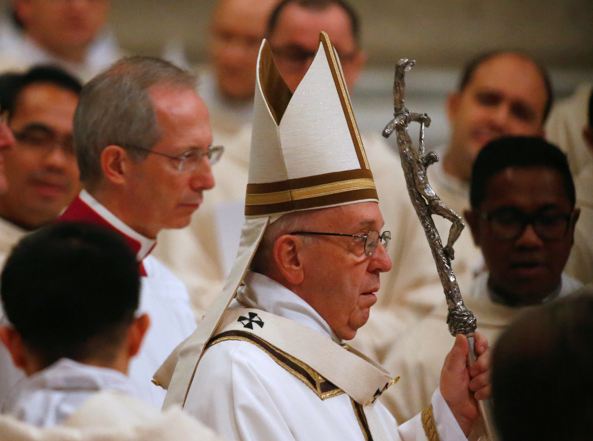 VATICAN CITY (Reuters) - Pope Francis strongly defended immigrants at his Christmas Eve Mass on Sunday, comparing them to Mary and Joseph finding no place to stay in Bethlehem and saying faith demands that foreigners be welcomed.