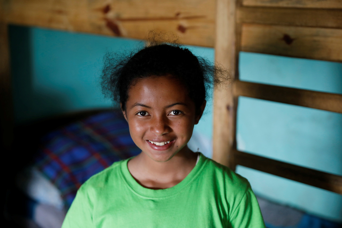 Her pastel green house sits on one side of a leafy courtyard where she plays hopscotch with her six siblings, a stone’s throw from Opeka’s own house in the hillside neighbourhood of Akamasoa.