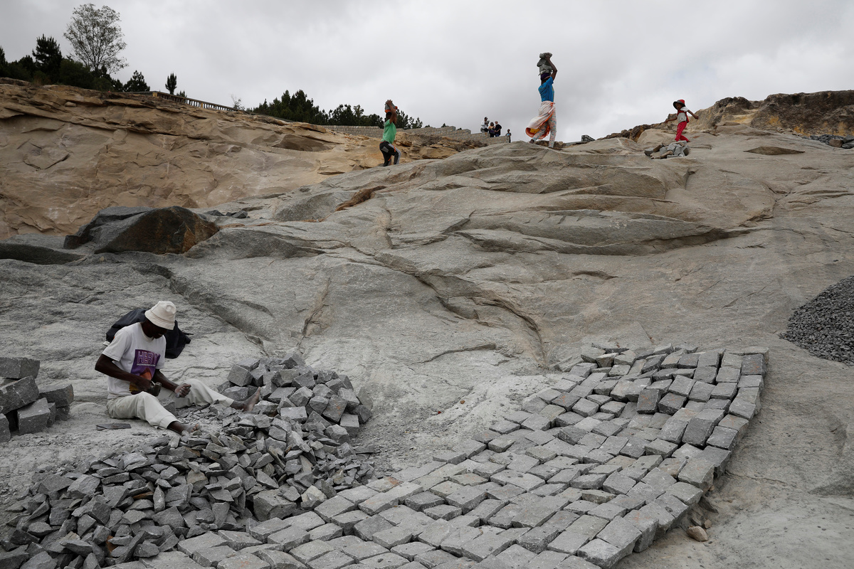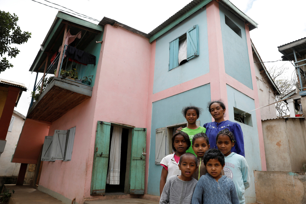 Residents of neighbourhoods built by the association earn around 50,000 ariary ($13) per week in exchange for breaking rocks by hand and building stone walls. They are given a house which they rent at a negligible rate, depending on their circumstances.