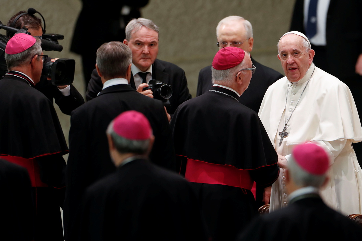 Before the audience began, the pope and several visiting French bishops prayed silently for the victims of abuse, a picture released by the Vatican showed.