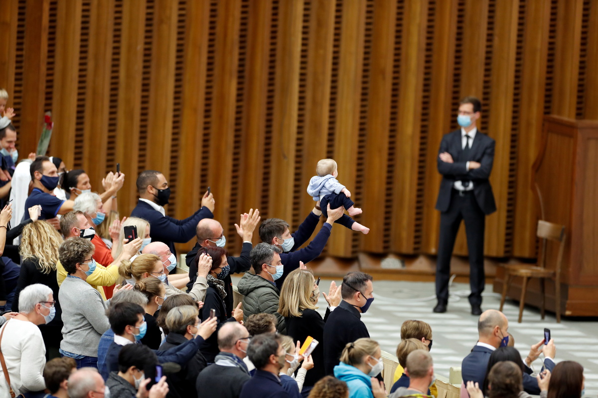 On Oct. 20, he wore a mask for several hours at a prayer service in Rome with other religious leaders, taking it off only when he spoke. Last Saturday, no-one in the pope's private library wore a mask when he spoke with Spanish Prime Minister Pedro Sanchez and his delegation.